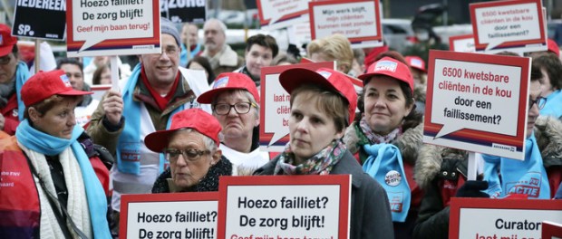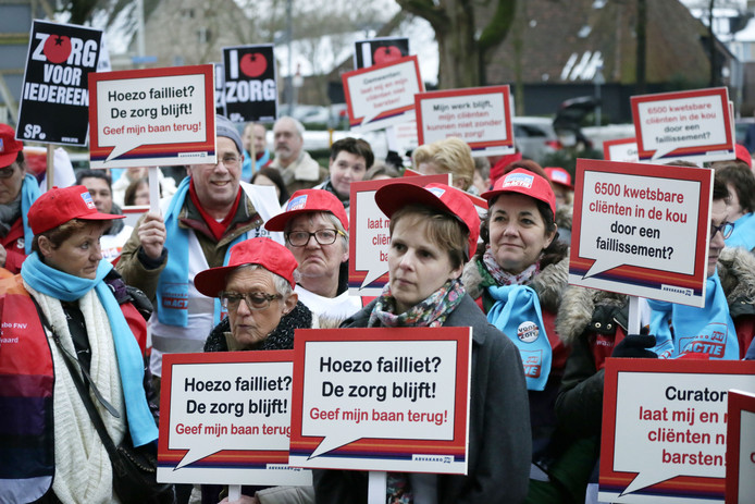 Werknemers van de failliete thuiszorginstelling Thebe protesteren in 2014 in Breda. Archieffoto Joyce van Belkom/Het Fotoburo © Unknown