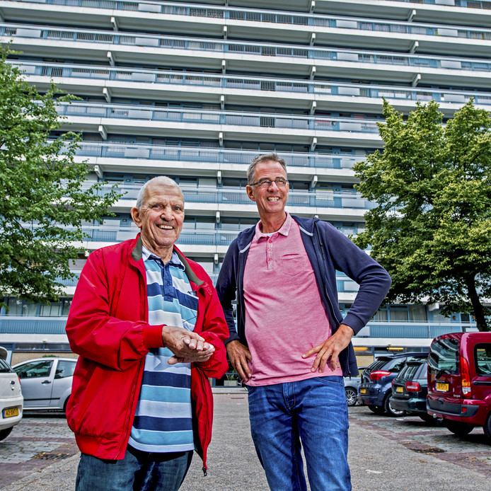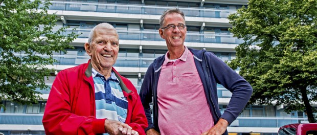 Pastor Bart Starreveld (rechts) met Ommoorder Chris. ,,Eenzaamheid van ouderen is een groot probleem.” © Frank de Roo
