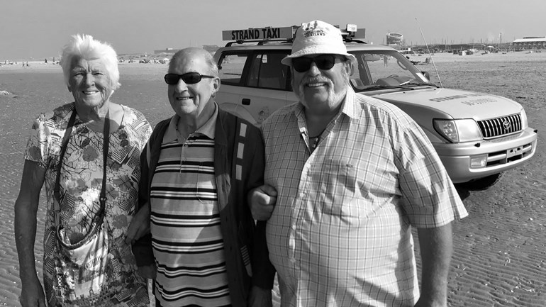 “Anders hadden deze mensen helemaal niet naar het strand en de zee gekund.” Hij wijst naar meneer en mevrouw De Vries uit Amsterdam. “Dit is toch fantastisch? En ik word gesponsord: tegenwoordig noemen ze dat AOW geloof ik. Ik heb geen haast, en doe lekker op mijn gemakkie de strandtaxi”, aldus Koks.