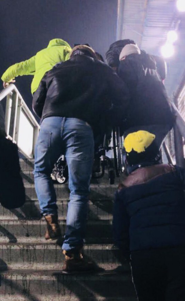 ,,Dat platform is er niet voor niks, maar dan moet je er wel kunnen komen”, zegt Bredanaar André van den Broek. Hij plaatste een foto op Twitter, waarop hij en zijn kameraden hun vriend Mike de tribune op tillen: ,,Samen gaan we al jaren naar NAC. De lift naar het rolstoelplatform vormt al jarenlang een frustratie: hij is telkens kapot”, zegt Van den Broek.