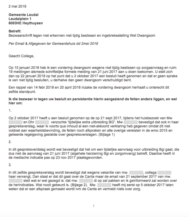 De Gemeente Leudal acht zichzelf niet in gebreke. In dit bezwaarschrift stel ik van wel. Wat denkt u?