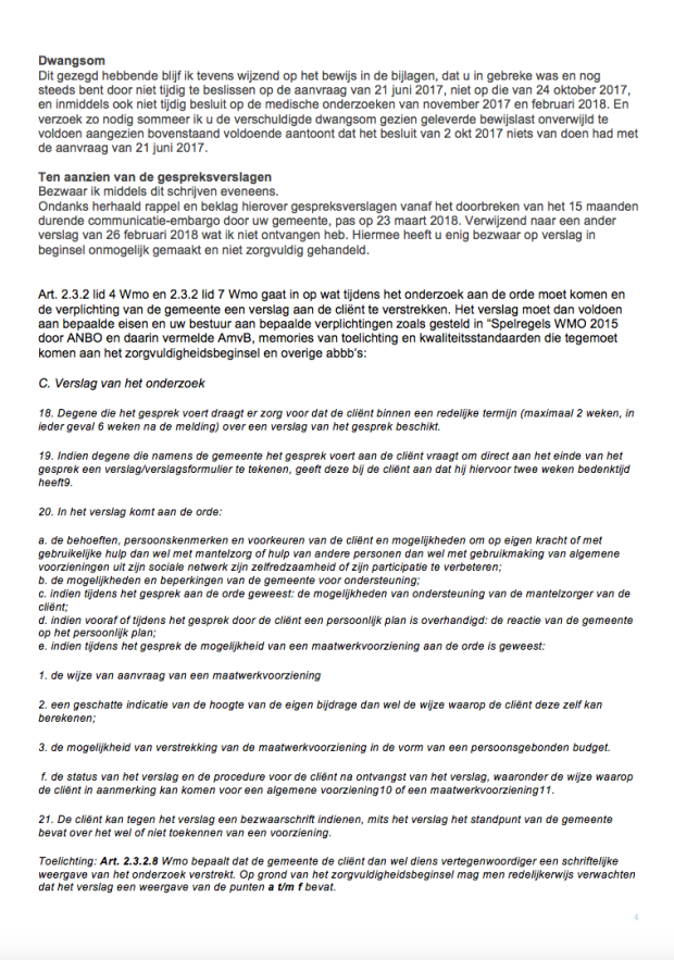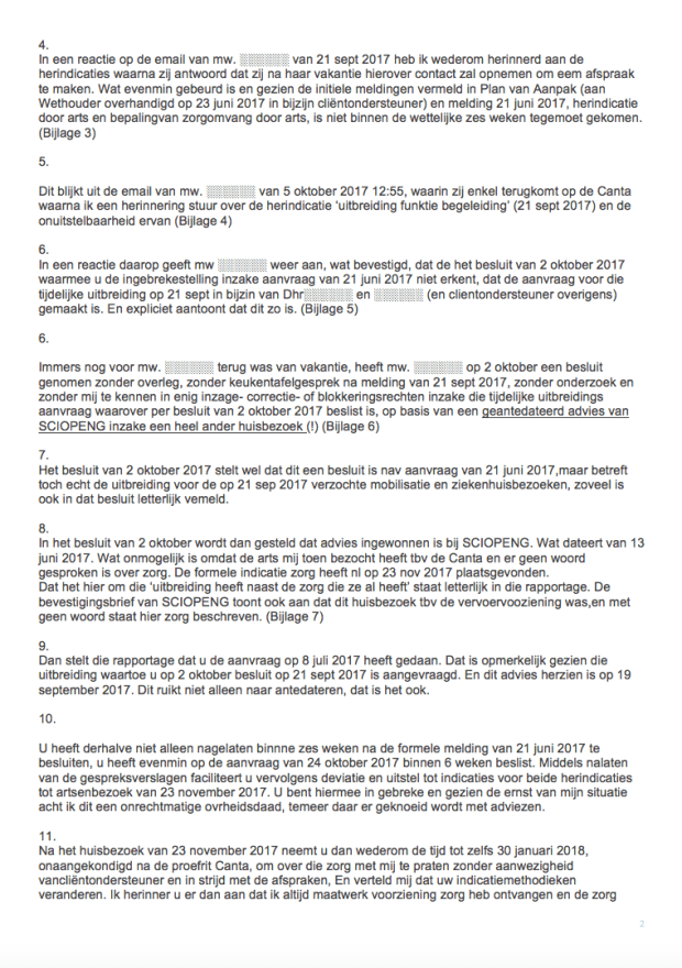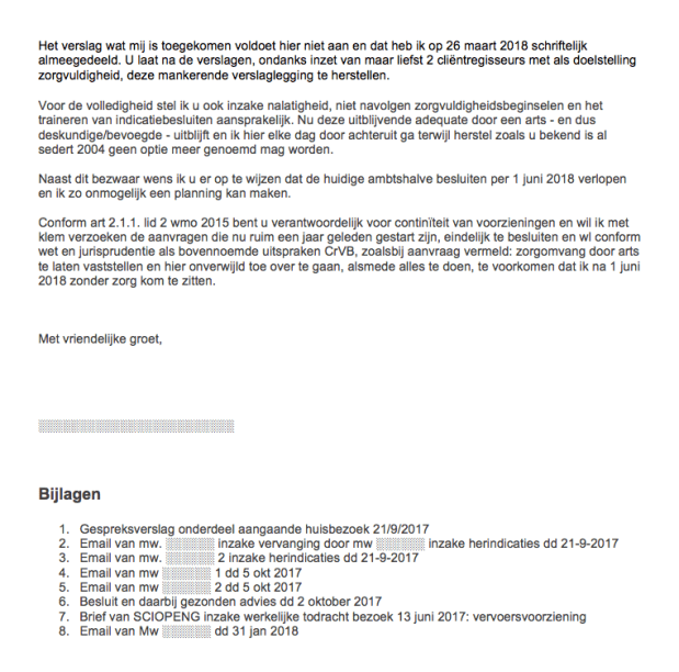 In verband met privacy zijn alle bijlagen afgebeeld behoudens de medische rapportage en het in bezwaarschrift benoemde besluit van 2 oktober 2017, die op verzoek (gebruik daartoe het contactformulier) geanonimiseerd toegezonden kunnen worden.